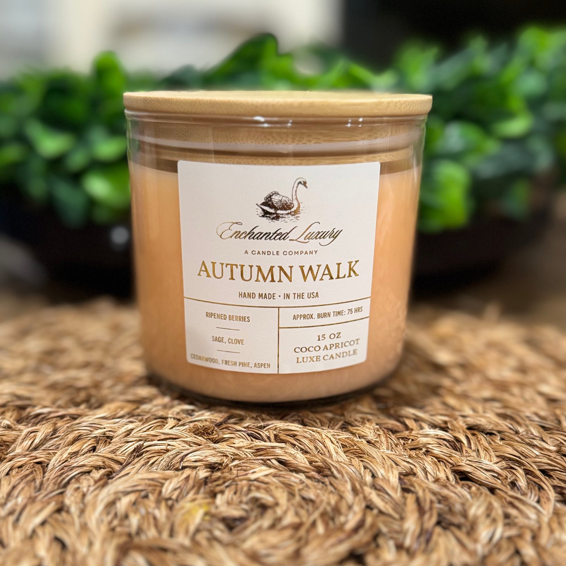 Autumn Walk evokes the essence of a crisp fall day, with its warm, inviting blend of fresh cedar, mountain pines, and golden aspens. This fragrance captures the beauty of falling leaves and earthy woods, enhanced by the richness of ripened berries, sage, and a touch of clove.