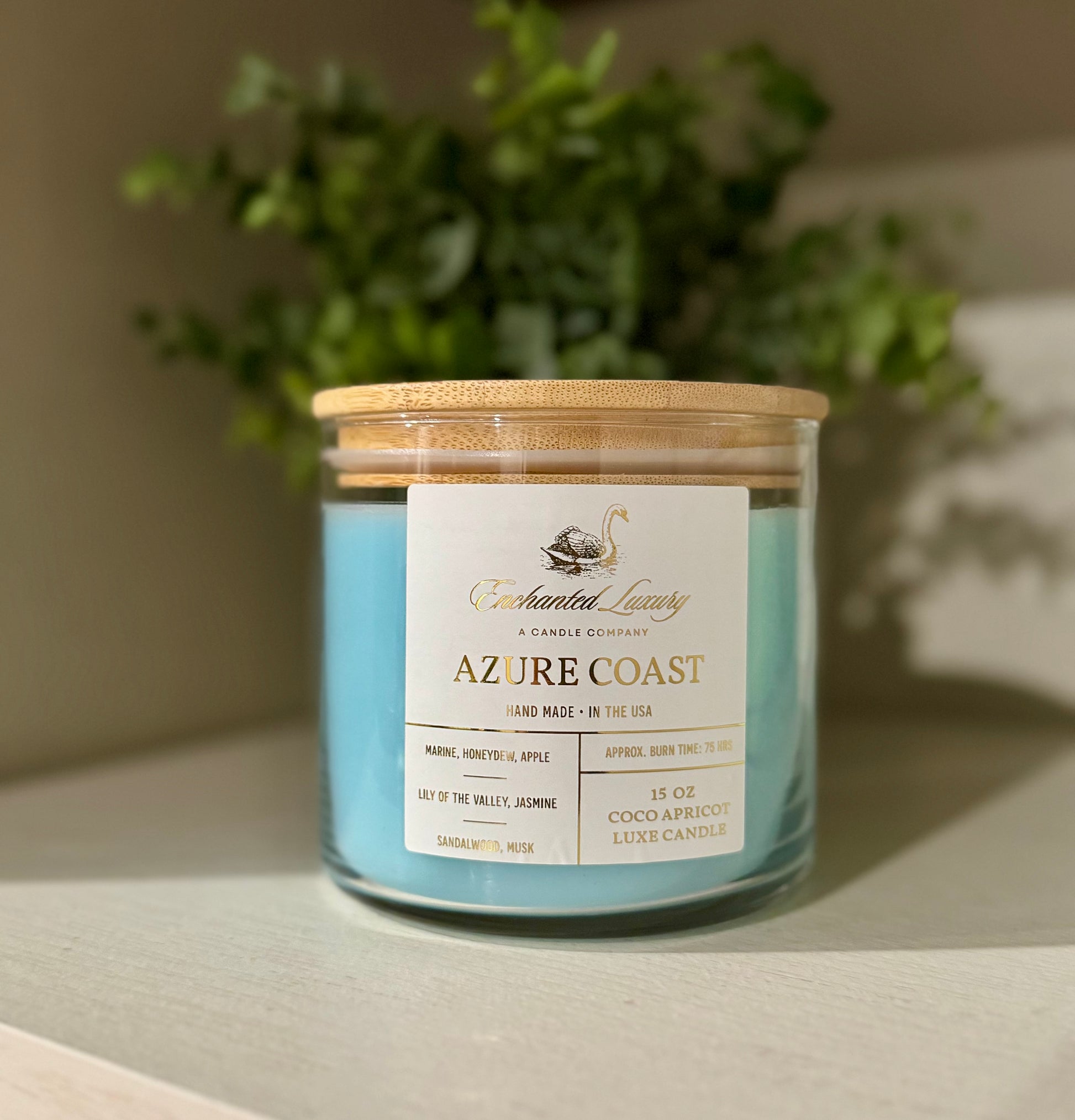 Experience the opulence of the Côte d'Azur with Azure Coast candle. Turquoise waters glisten alongside the sun-kissed shores of the Mediterranean in a region that has catered to European nobility for centuries. Refreshing top notes of marine, apple, and succulent honeydew melon set the stage for the floral heart of jasmine and delicate lily of the valley. Sandalwood and musk base notes add a subtle sensuality to Azure Coast’s bon vivant vibe.
