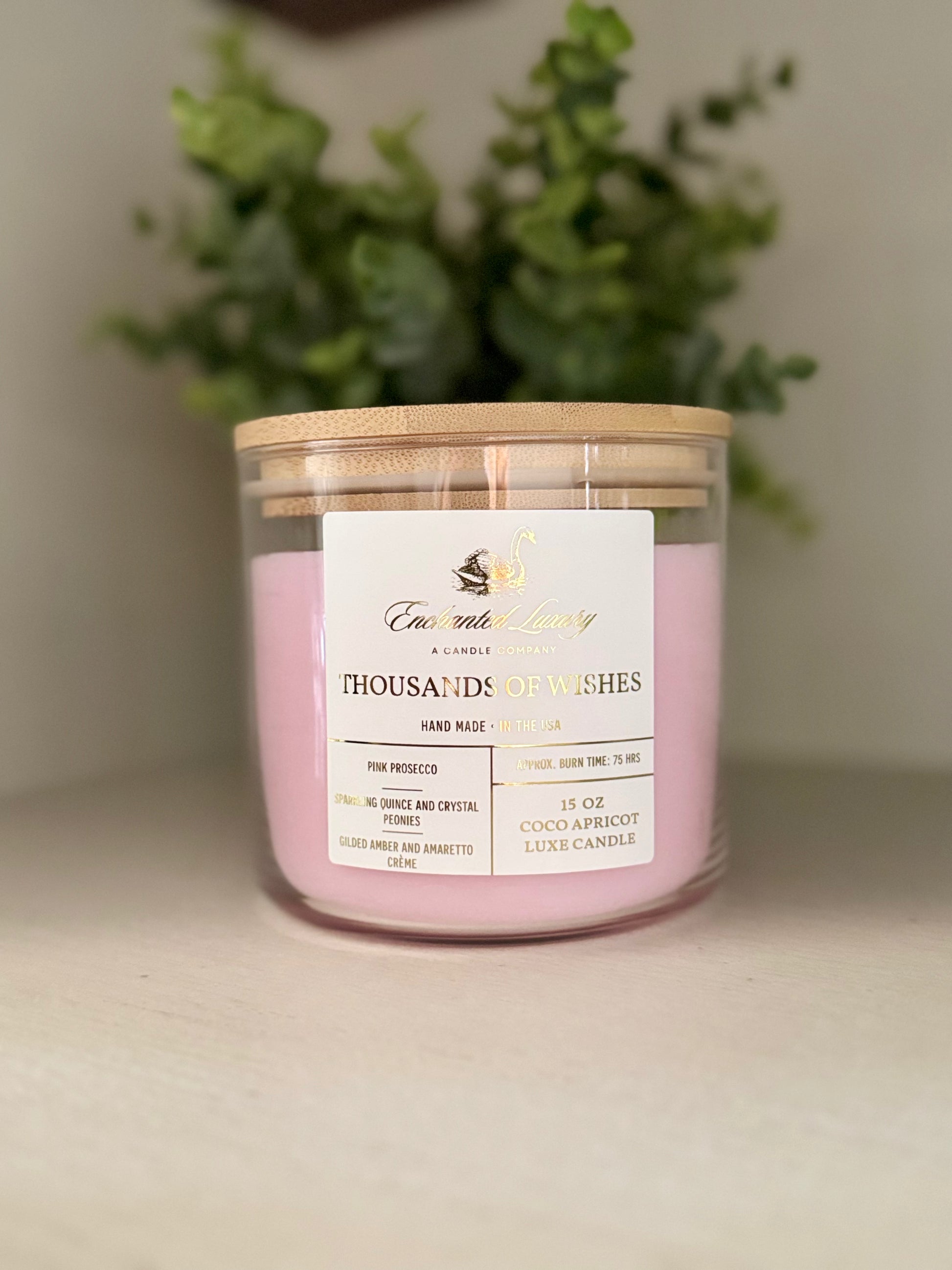 Thousands of Wishes Floral Fruity Candle - Eco-Friendly Soy Wax with Pink Prosecco & Amber