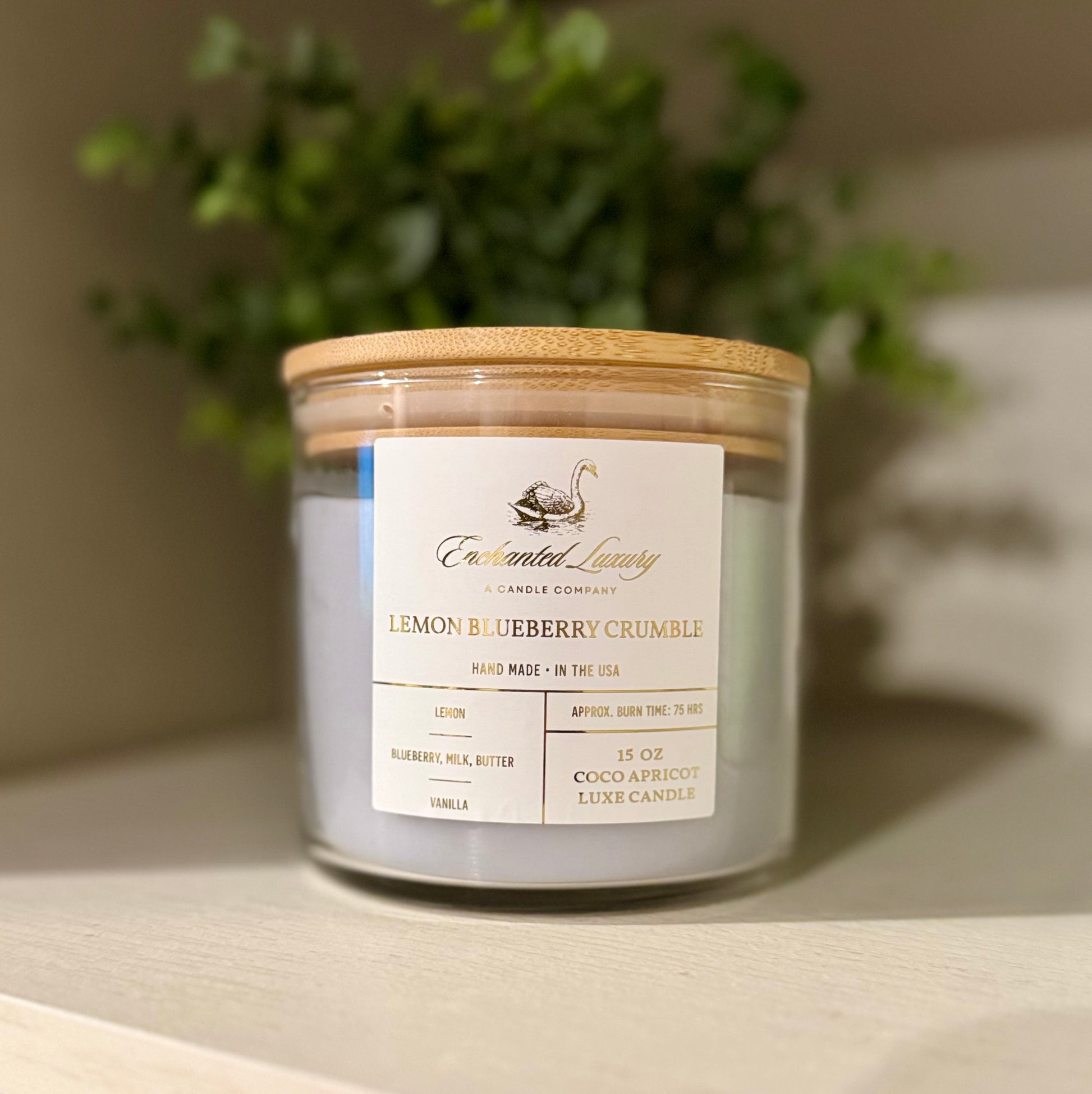Our Lemon Blueberry Crumble candle is a sweet and slightly tart crowd-pleasing treat. This fruity and familiar fresh-baked favorite is enjoyed as both a breakfast confectionary and decadent dessert. Citrusy sweet lemon top notes sit atop juicy blueberries, creamy milk, and whipped butter middle notes while a generous vanilla base provides richness throughout.