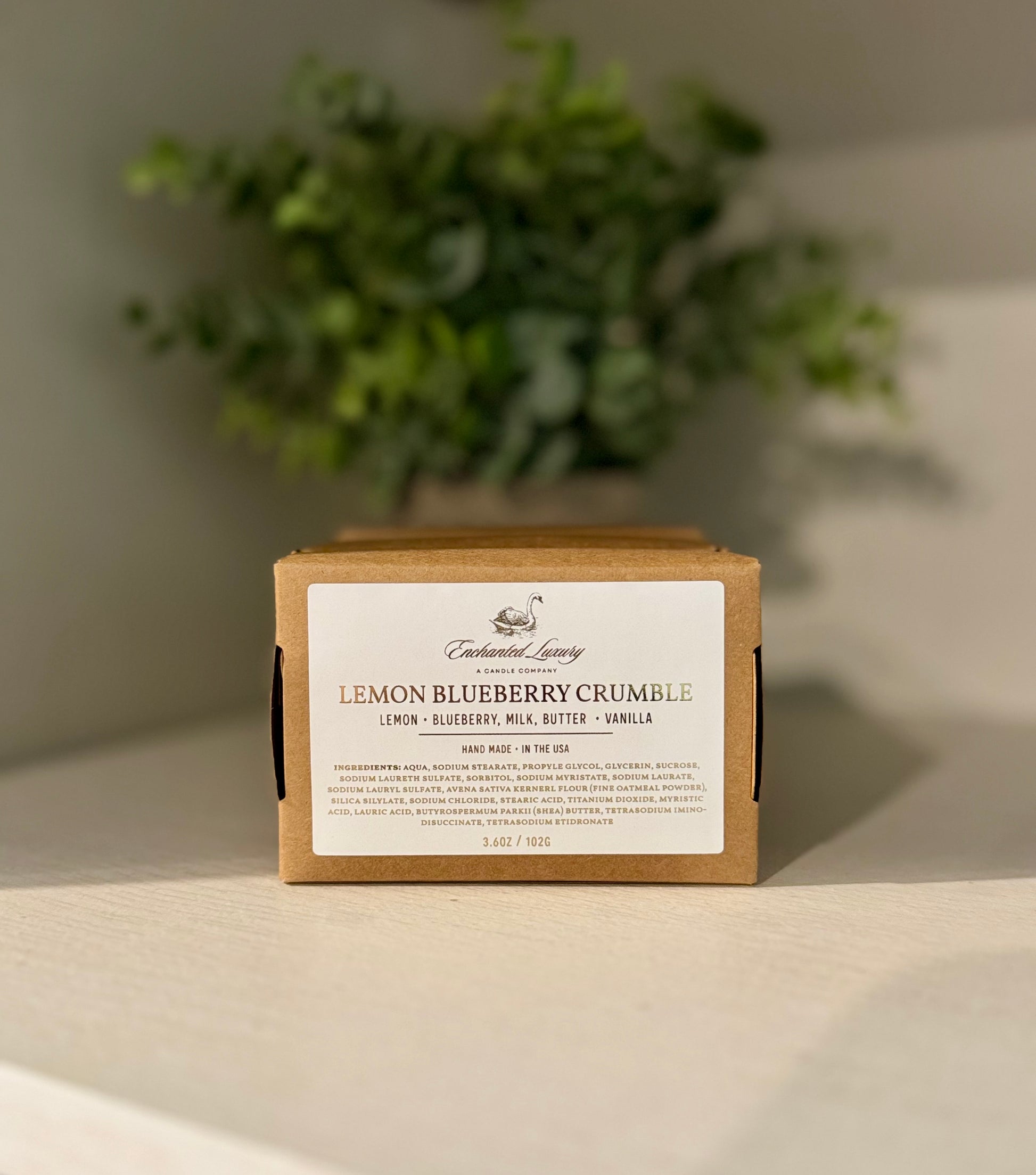 Our Lemon Blueberry Crumble Soap is a sweet and slightly tart crowd-pleasing treat. This fruity and familiar fresh-baked favorite is enjoyed as both a breakfast confectionary and decadent dessert. Citrusy sweet lemon top notes sit atop juicy blueberries, creamy milk, and whipped butter middle notes while a generous vanilla base provides richness throughout.