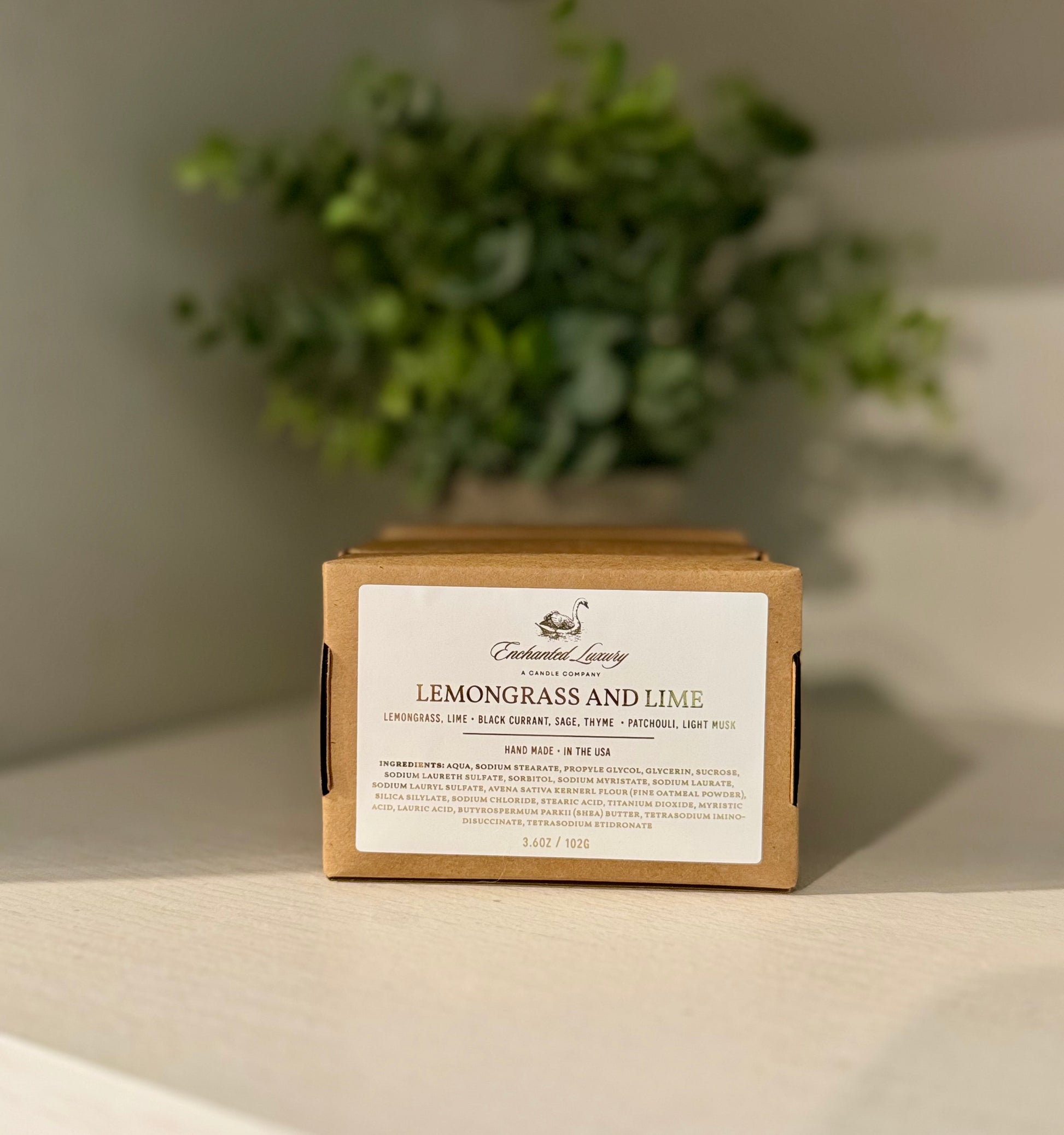 Bursting with freshness, our Lemongrass and Lime soap delights the senses. Bright lemongrass and juicy lime top notes meld seamlessly with sweet middle notes of black currant and earthy touches of sage and thyme. The fragrance is deepened with base notes of soothing patchouli and light musk. Whether you're looking to unwind after a long day or boost your energy in the morning.