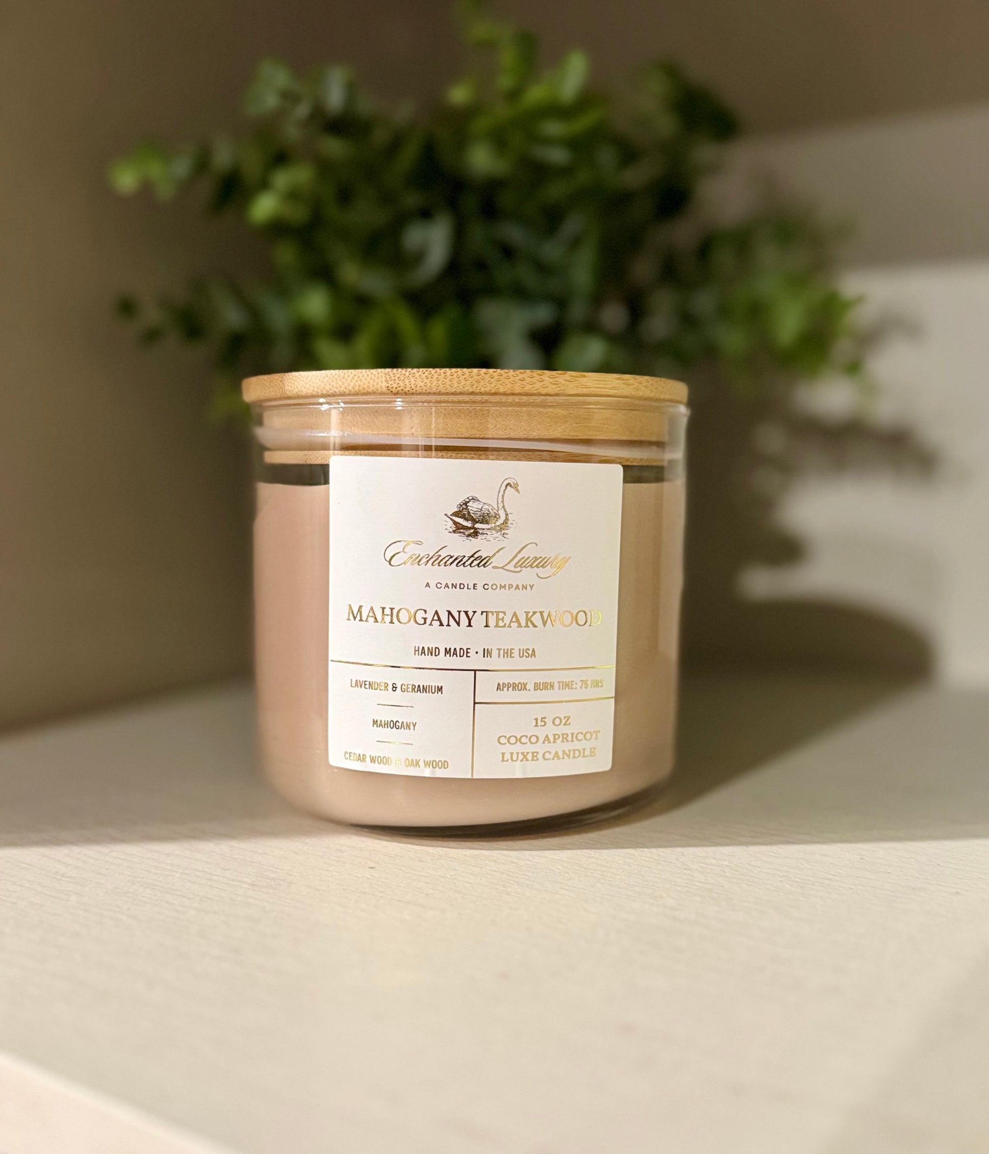 The Mahogany Teakwood Scented Coconut Apricot Luxe Soy Candle - Handcrafted Natural Wax Blend