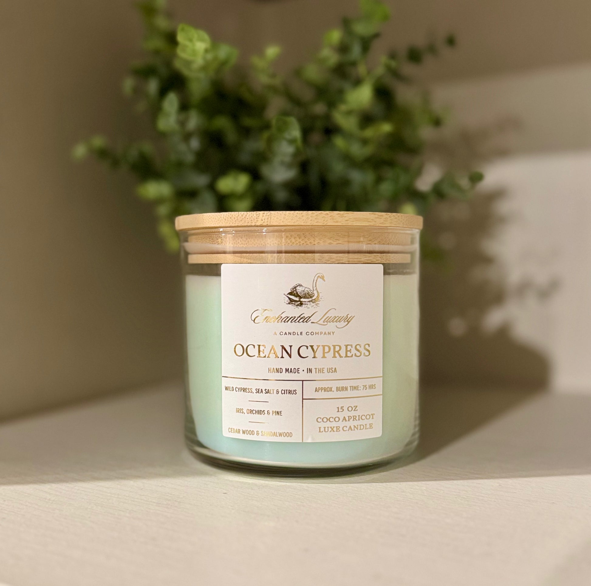 Ocean Cypress Luxe Soy Candle - Coconut Apricot Blend With Salty Sea Breeze & Coastal Pines Aroma