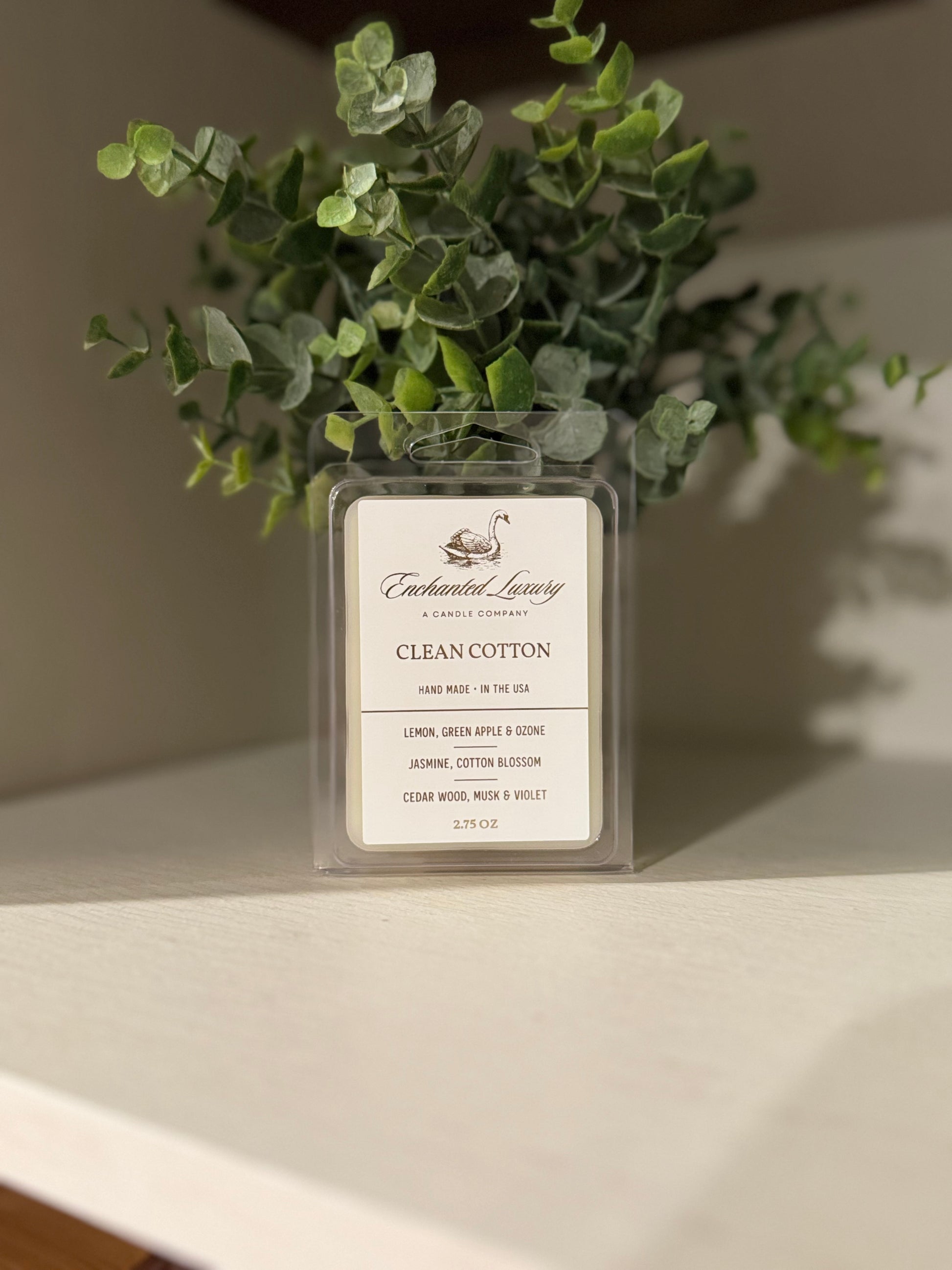 Experience the uplifting essence of freshness with our Clean Cotton melt, a delightful harmony of aromas inspired by sun-dried linens fluttering in a warm breeze. This luxurious handmade melt intertwines a bright and invigorating scent that revitalizes your space and lifts your spirit.